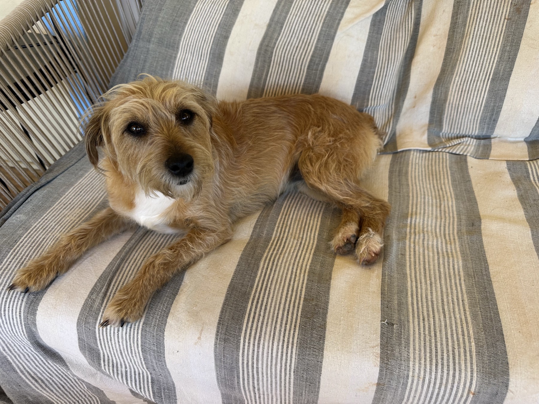 <OliveSprig size={50}/> Sun, grass, and three resident dogs